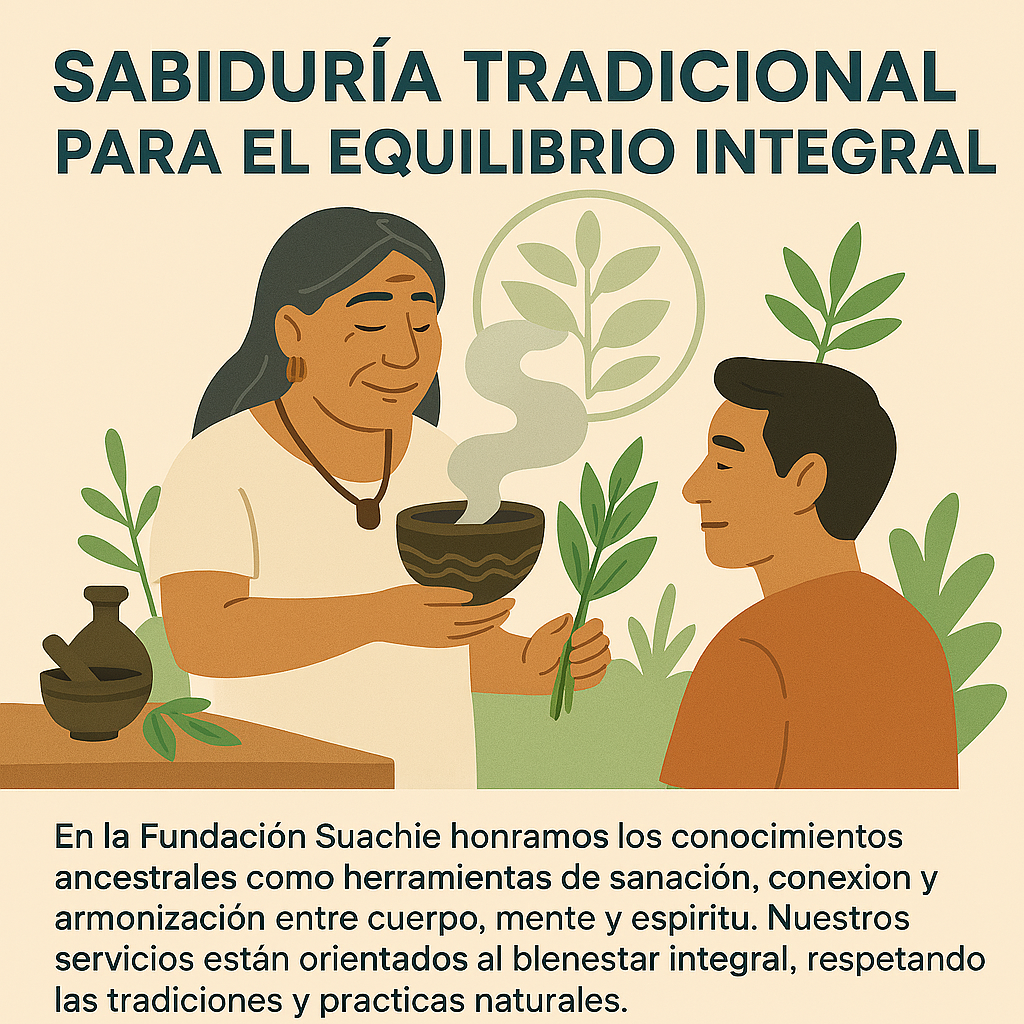 En la Fundación Suachie honramos los conocimientos ancestrales como herramientas de sanación, conexión y armonización entre cuerpo, mente y espíritu. Nuestros servicios están orientados al bienestar integral, respetando las tradiciones y prácticas naturales.